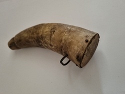 Мерная пороховница XIX в., сделанная из коровьего рога, где хранился основной запас пороха
